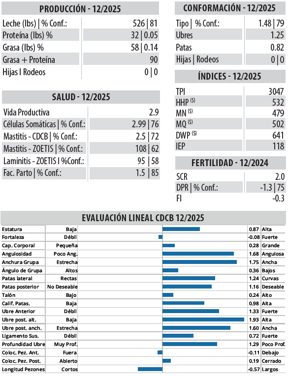 Sus hijas serán de muy buenos sólidos, con gran conformación de ubre y patas.