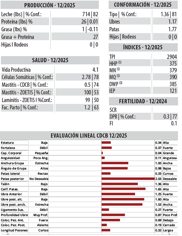 Colorado de muy buena producción, somáticas bajas y vida productiva.