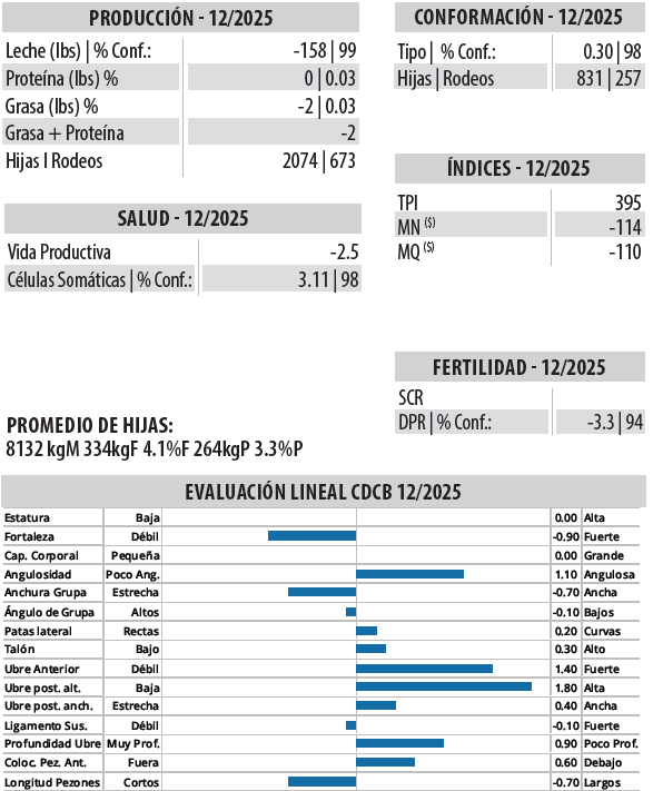 Usable en cualquier tipo de vaca y raza, A2A2, sólidos y conformación.