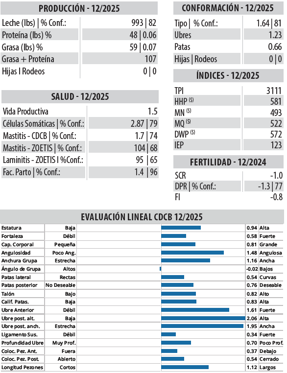 Producirá hijas de sistemas mamarios de calidad con pezones largos.