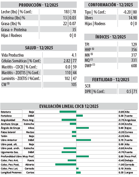 Sus hijas serán de muy buena salud desde terneras, convirtiéndose en vacas fértiles de bajas células somáticas y alta vida productiva.